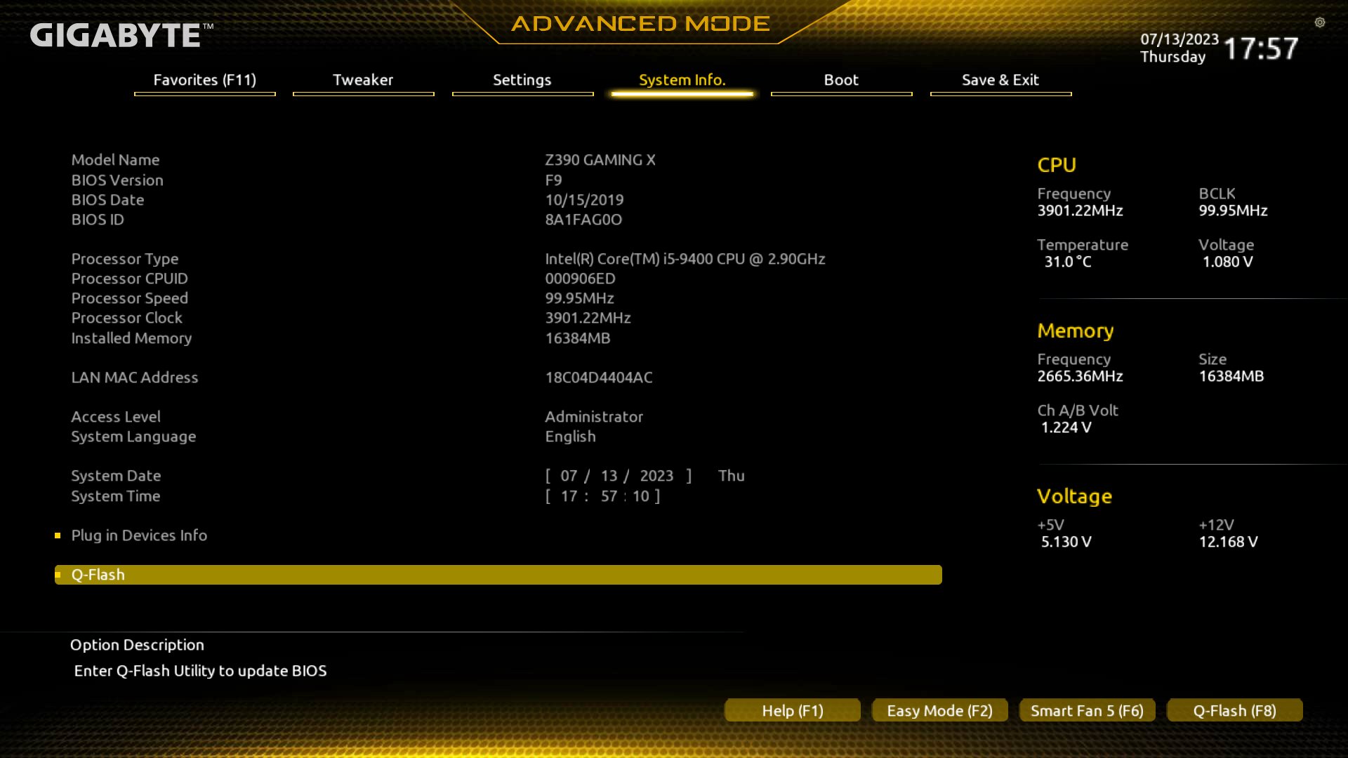 --> in dieser Datei steckt nicht das BIOS selbst, sondern nur die Einstellungen. Hast du das gleiche Board und die gleiche BIOS-Version (F9) kannst du damit einfach die erforderlichen Einstellungen laden und sie dann noch nach deinen Bedürfnissen anpassen