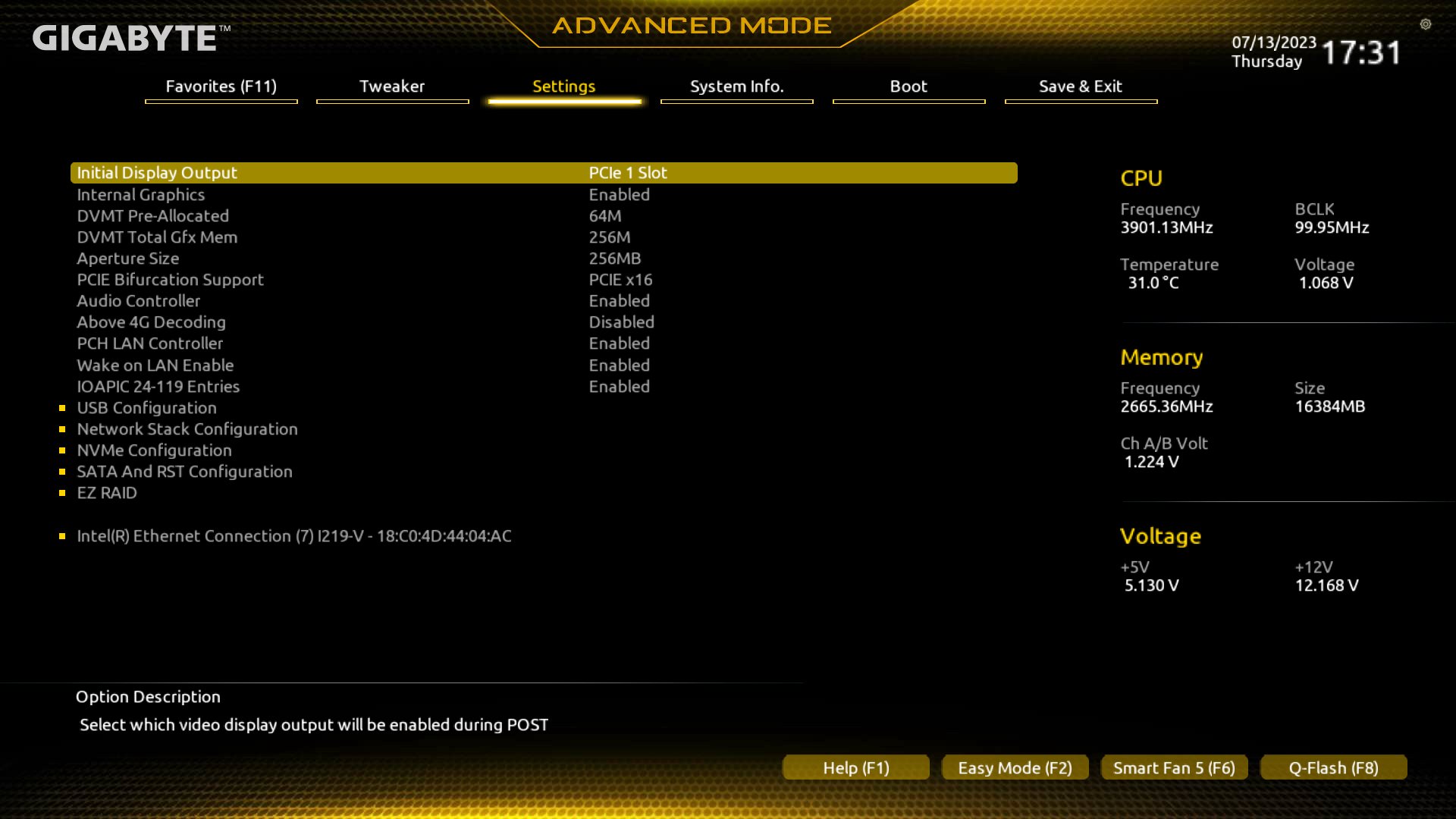 TIPP: BIOS-Einstellungen per Profile laden: im BIOS, Advanced Mode -> Save & Exit -> Load Profile -> Load file from disk -> Z390GamX1264.zip (ZIP vorher auf FAT32-Stick auspacken)
