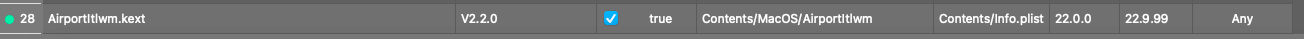 EDIT2: du hast nur einen AirportItlwm aktiviert und zwar den für Ventura???Ich hatte voriges Jahr zwei verschiedene, weil ich parallel Big Sur laufen hatte. Deshalb einen umbenannt und über Kernelversion gesteuert.