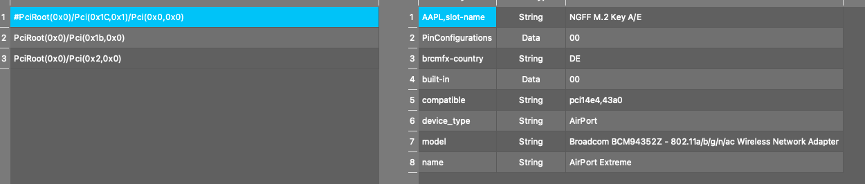 Den DP Eintrag für die Intel WLAN Karte konnte ich noch nicht finden. In der EFI bzw. Config.plist von Jezews321 habe ich auch noch nichts gesehen.