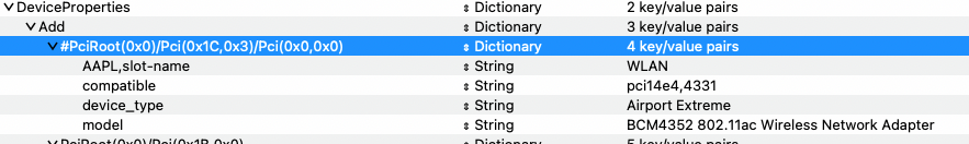 • Try this "compatible" not change 43a0 with Airport kexts