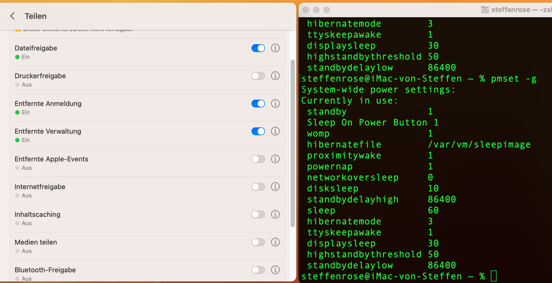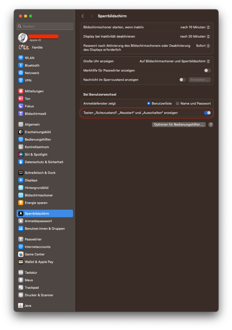 Prinzipiell funktioniert der Ruhezustand. Oben links Apfel, dann Ruhezustand und das Sandmänchen ist nach einer Minute daaaaa ![]()