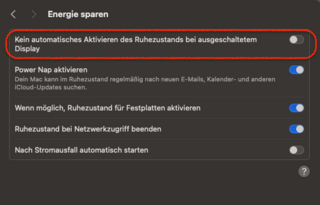 Display bei Inaktivität deaktivieren -> nach 25 min
