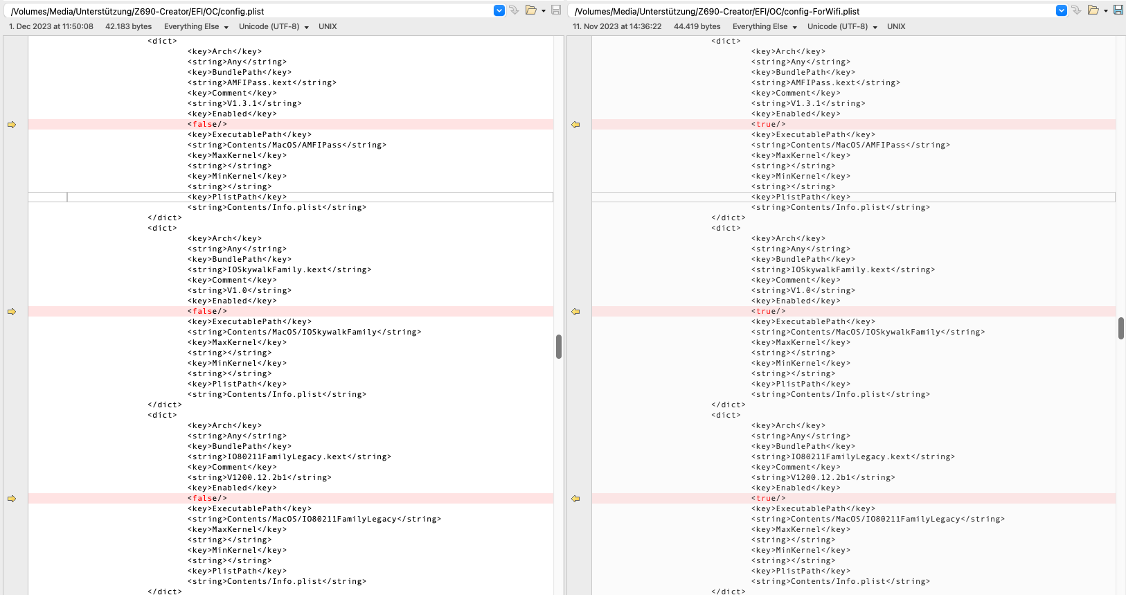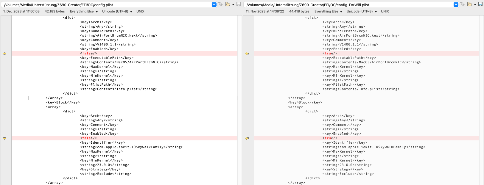 Meine beiden config.plists unterscheiden sich nur in folgenden Punkten: