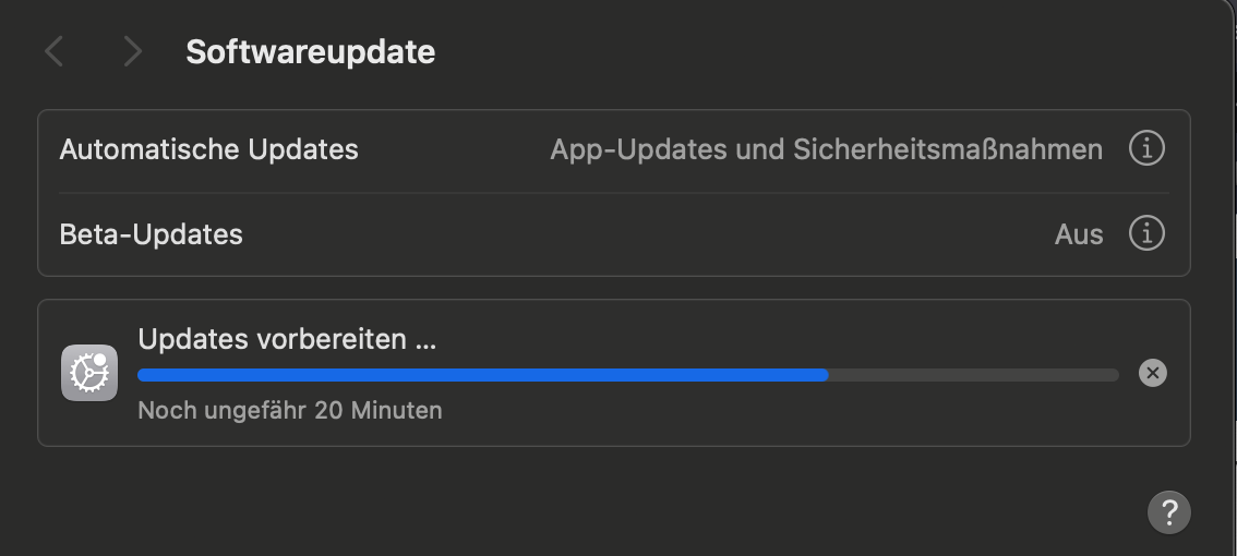 Vielleicht lohnt es sich bei dir den wahrscheinlich aktiven OCLP, die zusätzlichen WLAN-Kexte, den dazugehörigen Kext-Block und die SIP-Umgehung zu deaktivieren, dann sollte auch das Update sauber laufen.