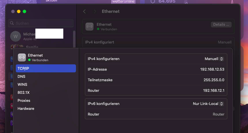 Ethernet hinter WLAN gestellt?