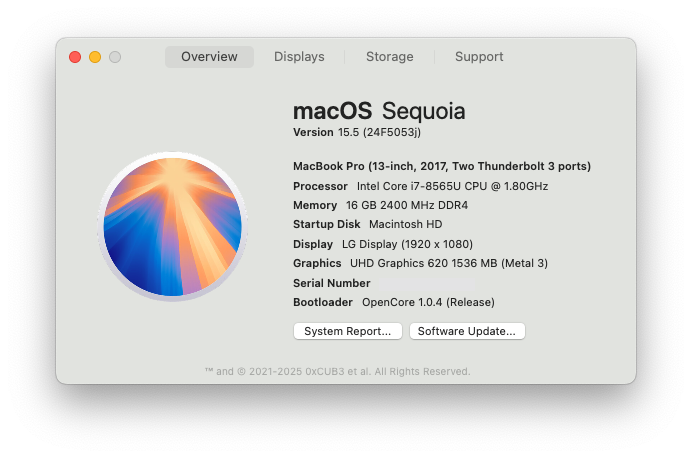Edit: Installation wie immer gut verlaufen und nach OCLP Patch auch wieder Broadcom-WLAN. Anbei bemerkt, wieso ich es von mrmacintosh herunter lade. Ich bekomme immer nur die großen Updates über 15 GB angezeigt, und wenn ich es über den Softwareupdater versuche, dann dauert es ewig und oftmals klappt es auch überhaupt nicht. Mag daran liegen, dass mrmcintosh die neuen Updates etwas später auf seiner Seite veröffentlicht und die Updatekanäle auf den Apple-Servern dann nicht mehr allzu doll überlastet sind. Kann ich nur jedem empfehlen, welche auch nur das große Update angeboten bekommen.