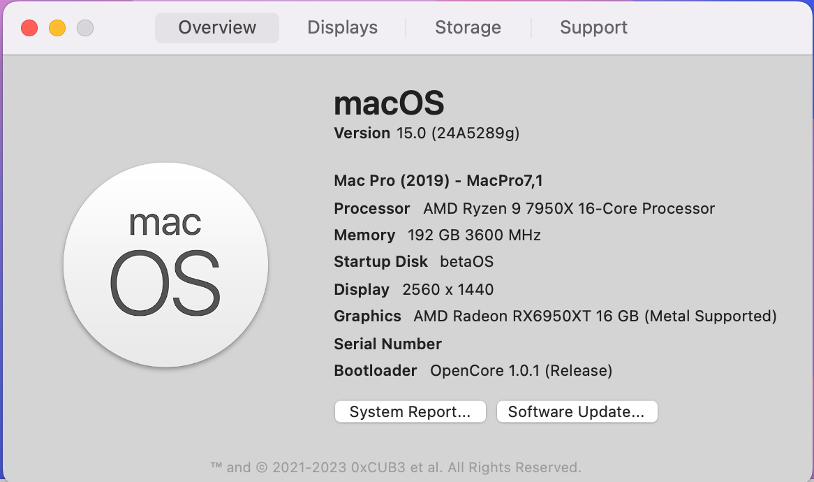 MacPro7,1: MSI Z590-A PRO | i5-11400 @ 2,60 GHz | 64 GB DDR4 | AMD Radeon RX 6600 XT 8 GB | WD Black SN850 NVMe 1 TB + Crucial CT1000MX500SSD1 SSD 1 TB + Crucial CT500MX500SSD1 SSD 500 GB | macOS Sequoia 15.7.6 (24G707) | OpenCore 1.0.7