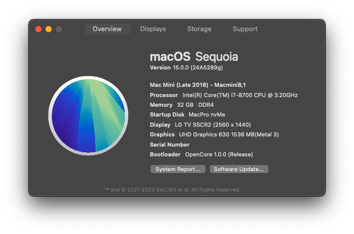 das farbig-bunte Sequoia-Logo gehört jetzt ja endlich zum Updater, nicht nur zum Logo von "About This Hack". Die zeigen (siehe oben) zZt noch eine Null zu viel beim Sequoia-OS...