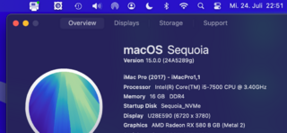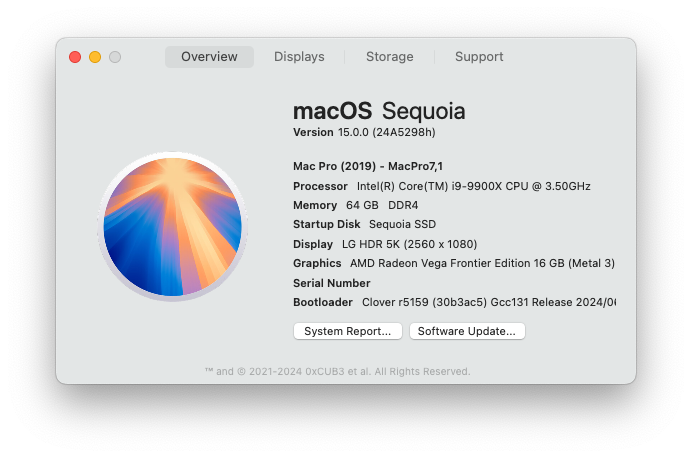 • Unterdessen läuft auch mein X99er als MacPro7,1 mit der aktuellen Sequoia-Beta-Version 24A5298h.