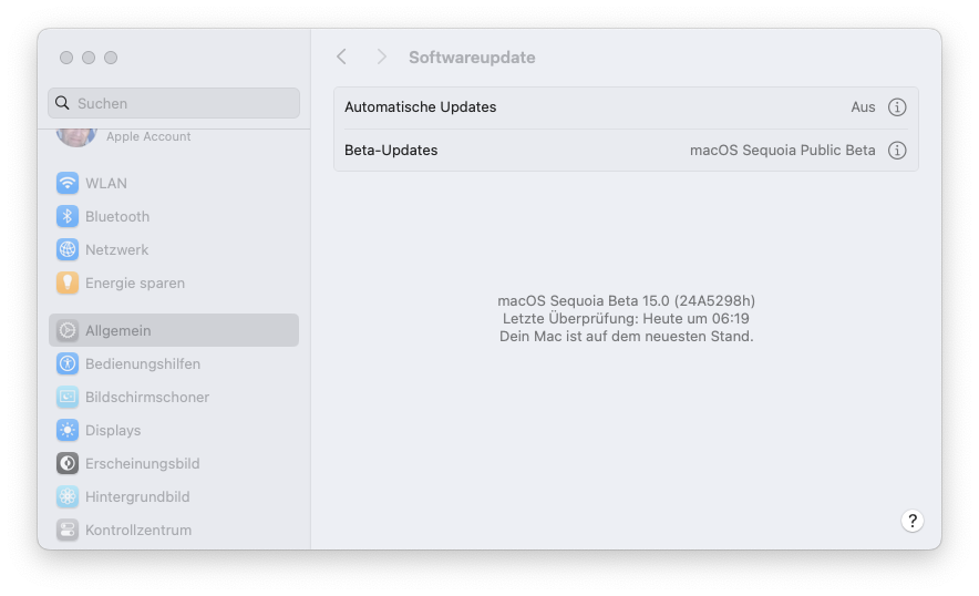 Dann sind wir mit der Public Beta 2 einen Tag nach der Dev.-Beta 4 beim gleichen System mit der Nummer 24A5298h.
