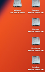 • Namensänderungen haben etwas von Glücksspiel: mal reicht es, die (laufende) Systempltte einfach umzubenennen, mal brauchst Du dafür das Festplatten-Dienstprogeamm mit der Einstellung "Darstellung/Alle Geräte anzeigen" und der musst Du den Namen sowohl für die Systemplatte, als auch für die "Systemplatte-Daten" Partition ändern. "-Daten" bleibt dabei natürlich als Anhang..