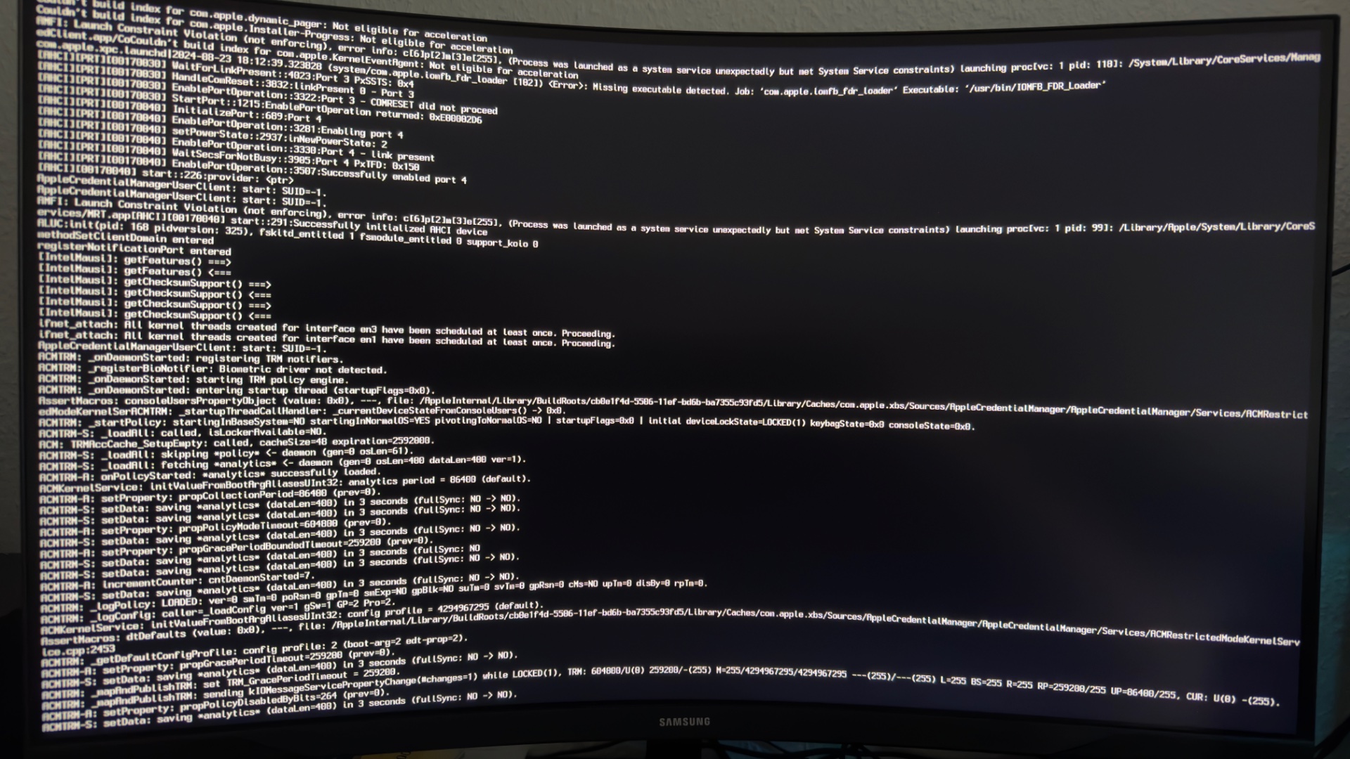 Ich bin gerade Mega Verzweifelt... Ich habe mein Setup ja ein Update Verpasst, und um es kurz zu machen, beim Boot komm ich in OpenCore, er zieht auch seine Lines durch, aber bei einem Punkt hört er auf und es passiert nix mehr. Ich hab die EFI mehrmals durchgeschaut, geändert und Herr Google gefragt aber ich komm einfach nicht weiter.