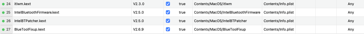 Übrigens ist mir zufällig aufgefallen: Bluetooth meiner DW1820a funktioniert auch ohne BrcmFirmwareData.kext und BrcmPatchRAM3.kext, nur mit BlueToolFixup alleine - allerdings konnte ich so meine Logi MX Maus nicht koppeln (gefunden wurde sie aber).