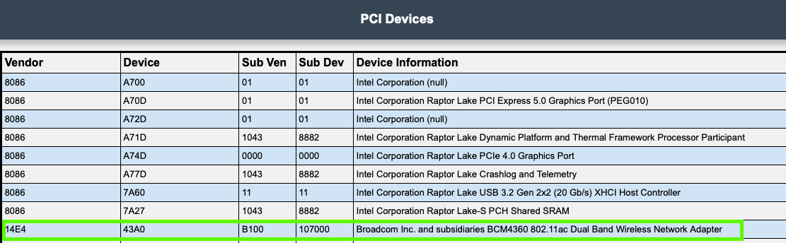 In deinem Sysreport steht aber doch eine Broadcom "BCM4360"?