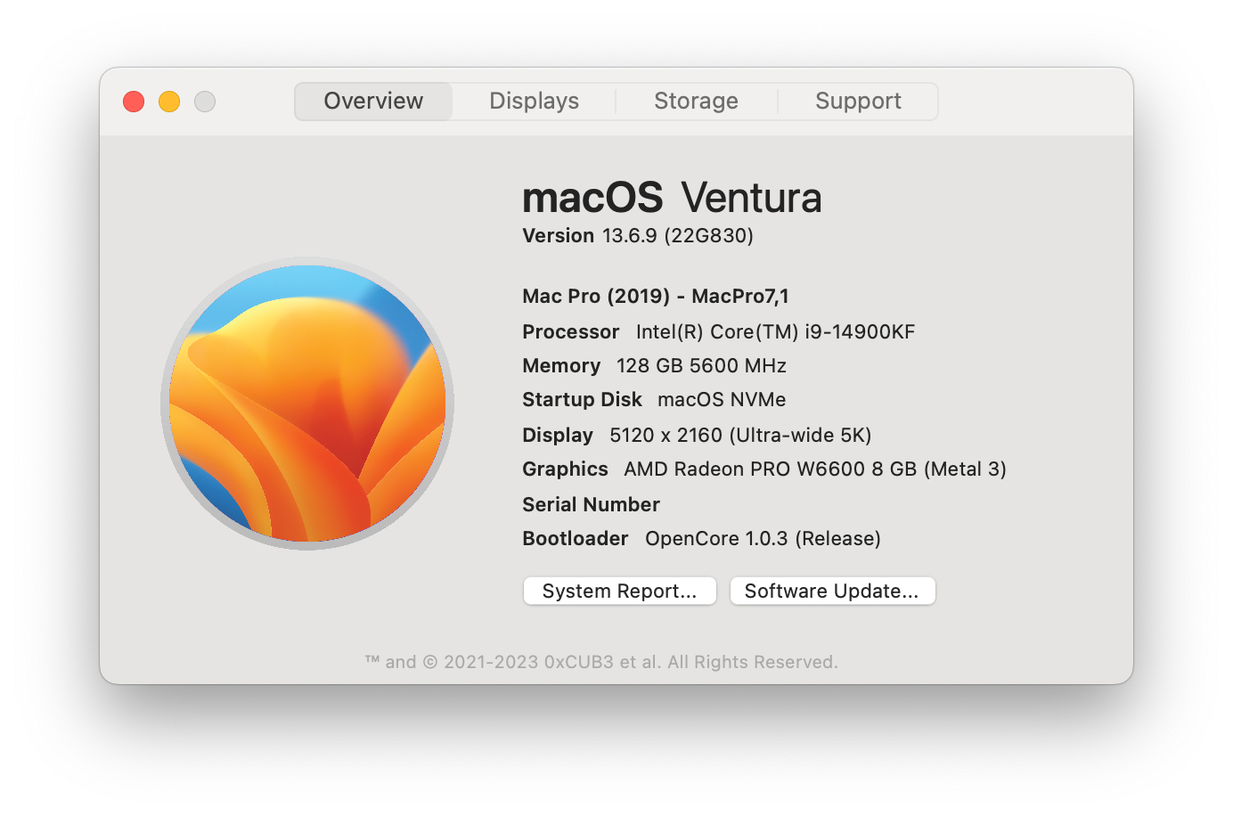 In meiner Config steht nach wie vor unter NVRam / 4D1FDA02-38C7-4A6A-9CC6-4BCCA8B30102 / revcpuname / "24-Core Intel i9-14900KF". Da im "About This Hack" aber hinter dem Intel und am Core noch dazu gehörende Bezeichnungen stehen, gehe ich aber davon aus, dass die Infos nicht von der PListe kommen, sondern direkt von der CPU.