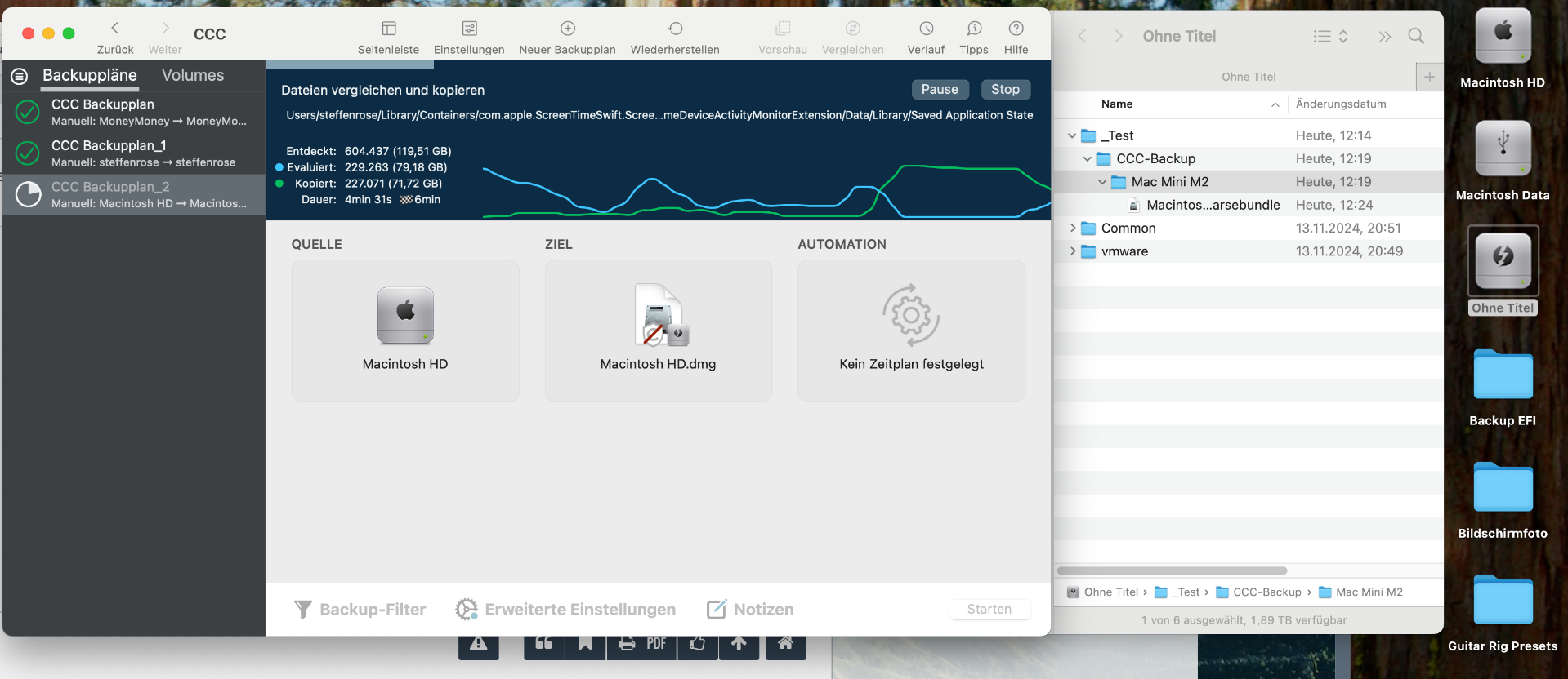 also jeder ist seines Glückes Schmied und viele Wege führen nach Rom. Ich kann nicht beurteilen, ob beim Klonen die Vor- oder die Nachteile überwiegen, ich habe das noch nie für Backup genutzt. Mit dd habe ich eine SATA HD auf SATA SSD geklont, um einen alten Samsung Blueray Recorder mit einer größeren Disk auszustatten. Das dauerte seinerzeit so um die 15h aus der Erinnerung. Unter MacOS habe von Anfang an Time Machine genutzt und habe auf einter 4 TB SATA HD die verschiedensten Accounts von MacOS seit 10.13 drauf.