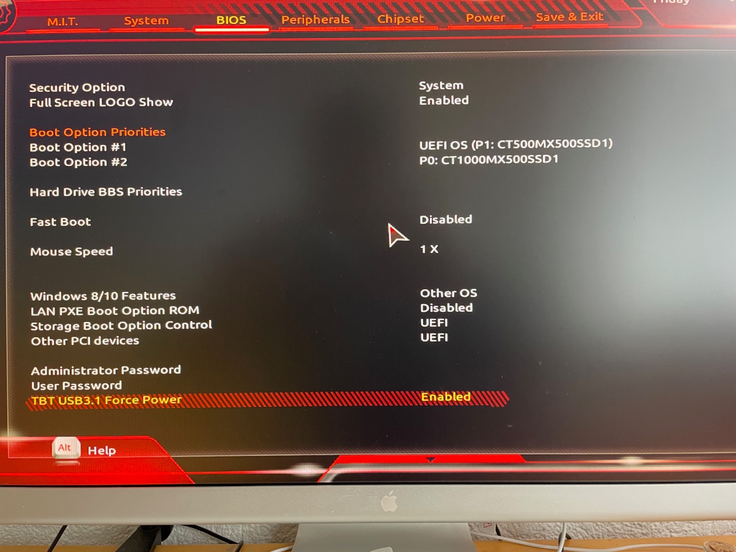 - Gibt es eventuell BIOS- oder macOS-Anpassungen, die ich übersehen habe?