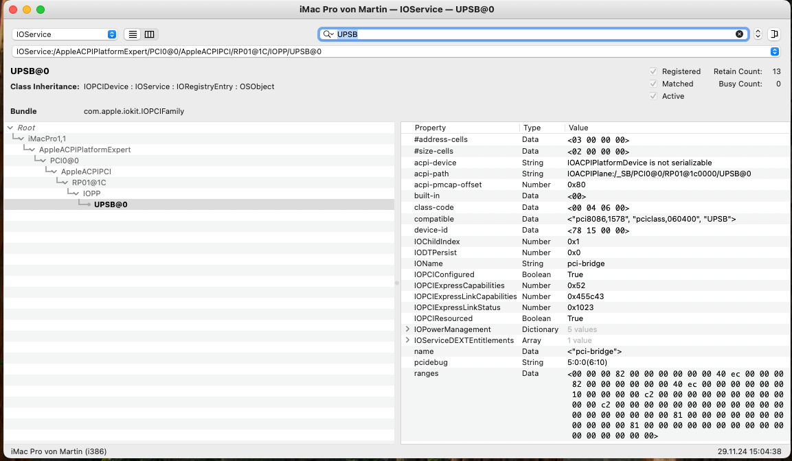 - OS: Mac OS Sequoia 15.0 konfiguriert als iMac Pro 2017 (SMBIOS)