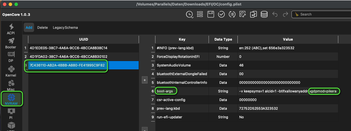 Ich habe die Sample config.plist von OpenCore verwendet und angepasst. Das einzige "Besondere", das ich gemacht habe:
