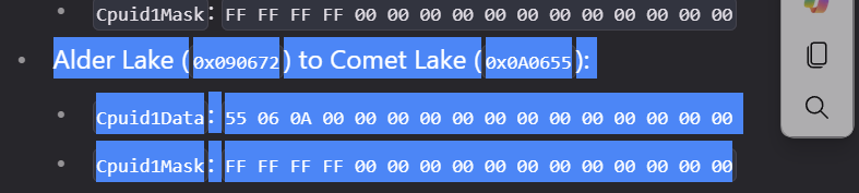 Bei Emulate hast du bei Cpuid1Data einen Alderlake angegeben.