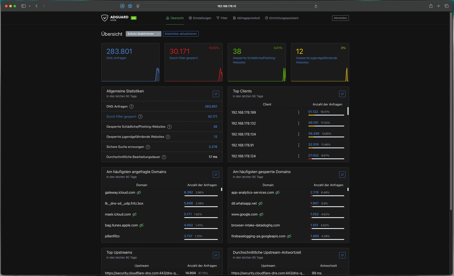 Die zweite Instanz die der Server bereitstellt ist Adguard Home. (wem piHole besser gefällt kann das natürlich auch nutzen und ganz einfach per Container in DSM7.x installieren)