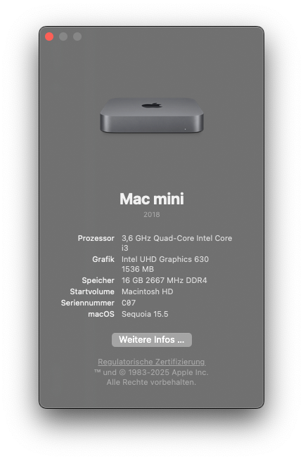 Das ganze hier bezieht sich nicht nur auf in meinem Fall verwendeten Mac Mini 2018 sondern kann genauso auf die 2011er, 2012er und 2014er angewendet werden.