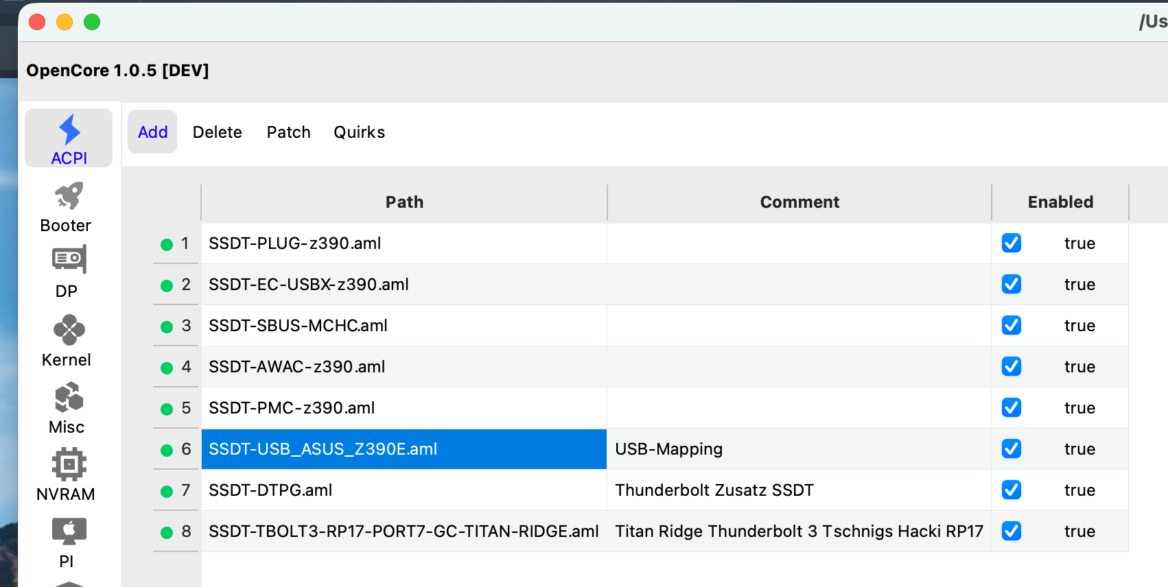 • Die "SSDT-USB_ASUS_Z390E.aml" ist deine gepatschte USB table die zu Einsatz kommt..