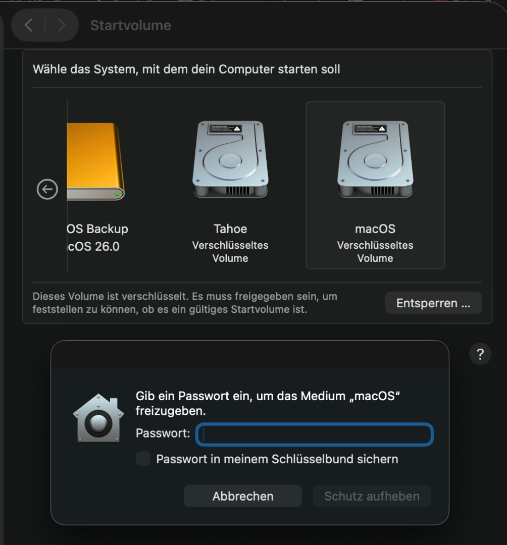 • Na großartig :wallbash: Jetzt hat es Tahoe irgendwie geschafft auf meinem M4 mini meine Sequioa Produktiv installation zu Verschlüsseln. Ich habe keine Ahnung wie das passieren konnte.
