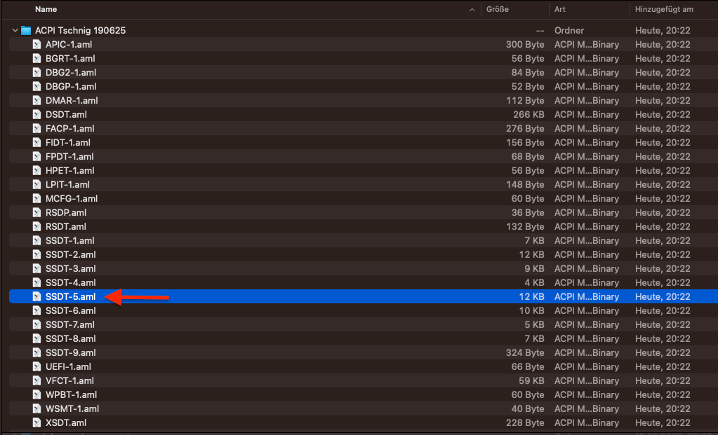 Die originale SSDT-5.aml Table ist diejenige die es zu droppen gilt...