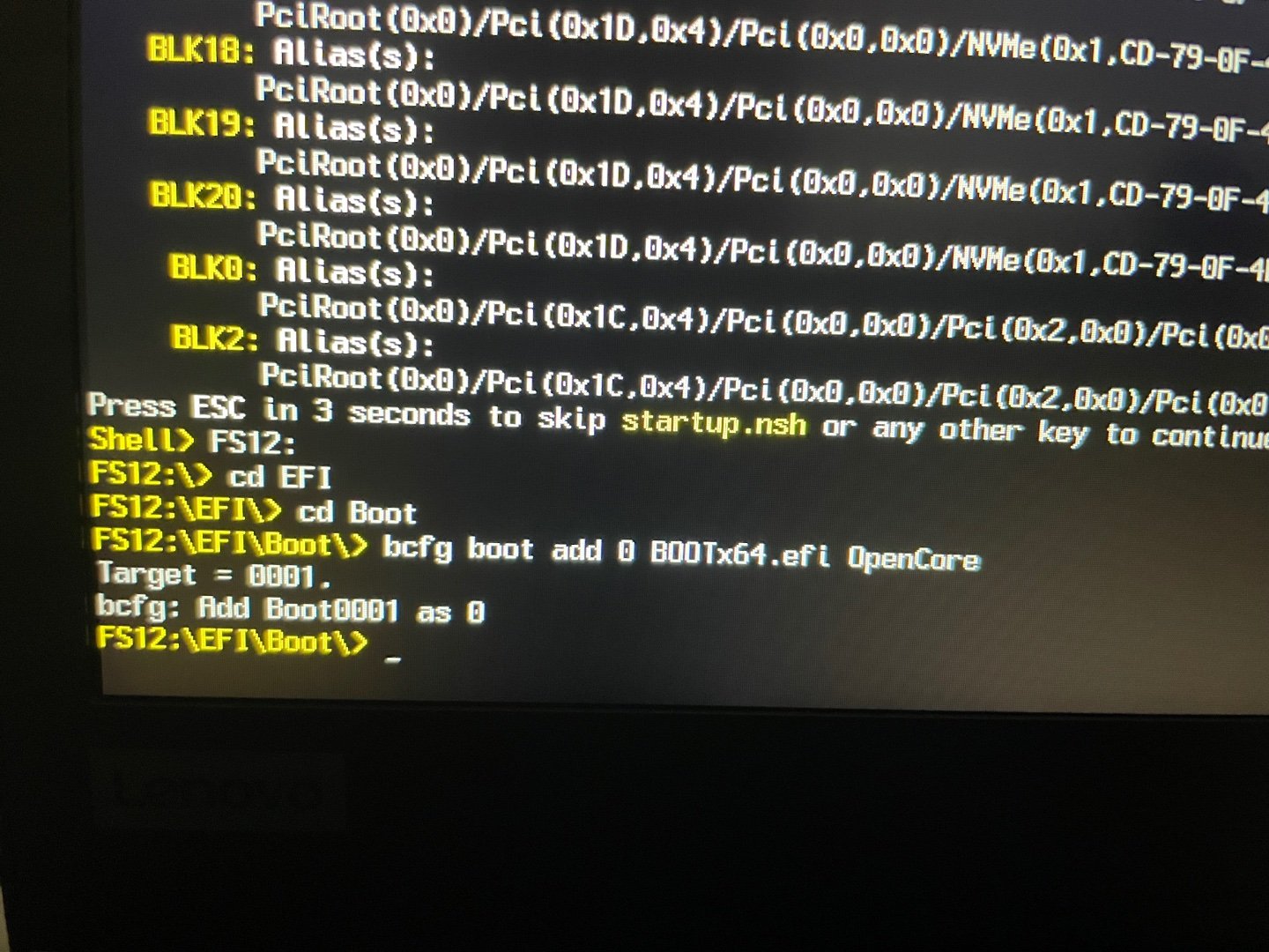 Den UEFI-Eintrag für "BOOT_x64.efi" kannst Du in der Openshell von Opencore mit "bcfg" setzen. Dazu einfach bis in den Ordner von refind gehen.