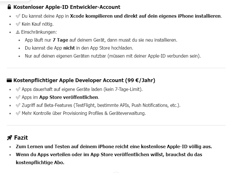Entwickler wird deine "signierte" App automatisch nach 7 tagen gelöscht, nur mit einen kostenpflichtigen