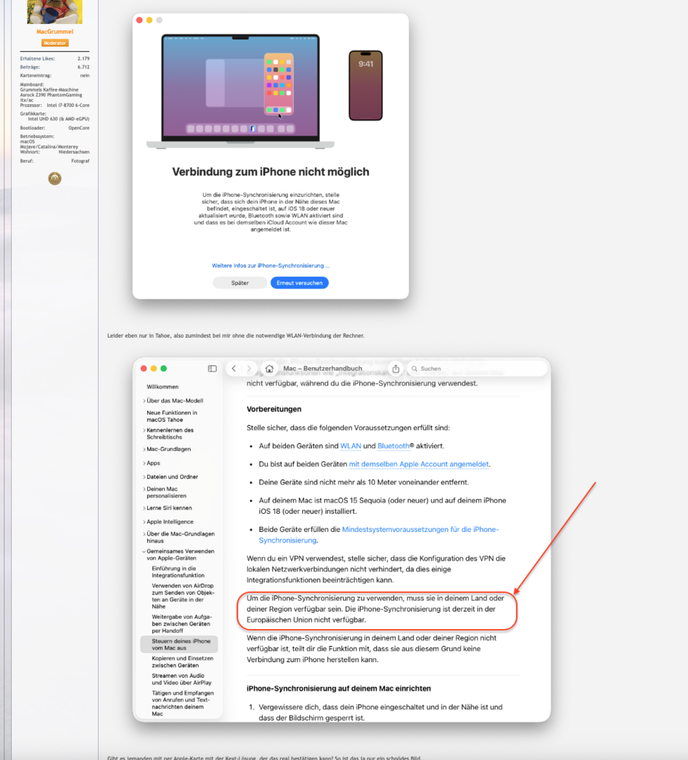 • in 26.2 Beta gibt's gar keine iPhone Synchronisation. Hab ich ein Glück, muss ich mich nicht ärgern, dass etwas hier in EU nicht möglich ist und ich es daher nicht tun kann - aber wenn's auch möglich wäre, würde ich überhaupt?