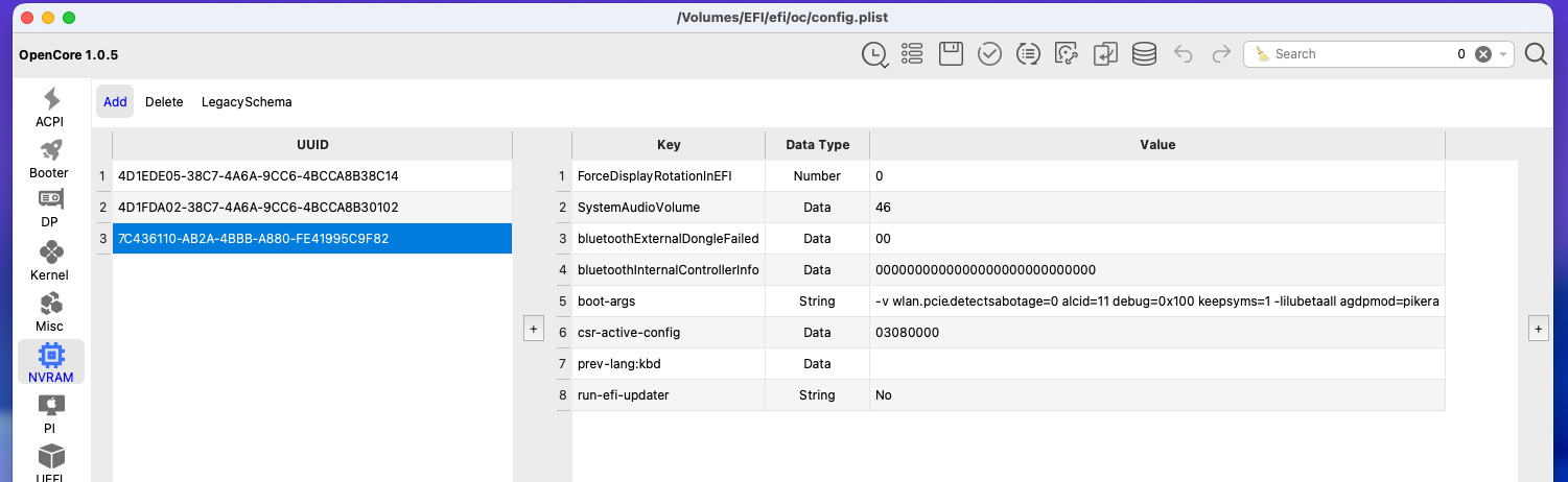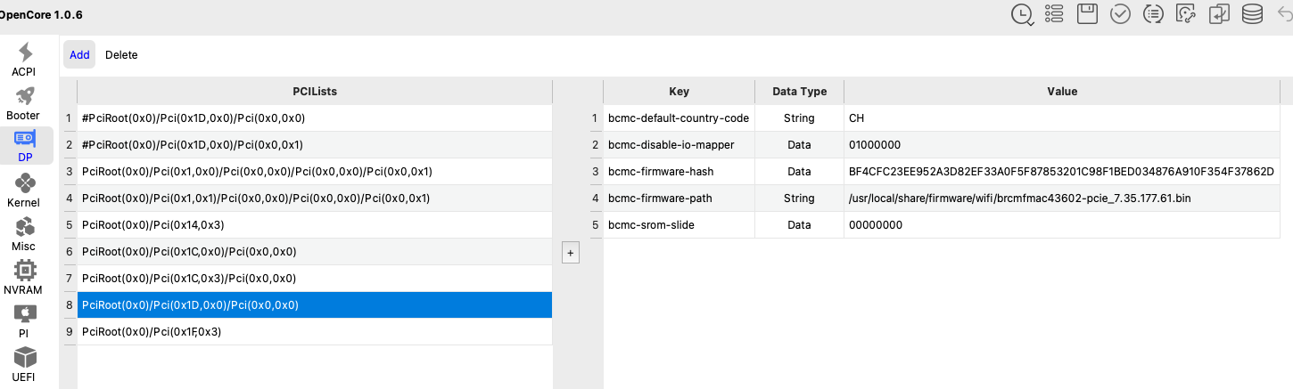 Die beiden NVRAM Parameter bluetoothExternalDongleFailed und bluetoothInternalControllerInfo braucht eine BCM943602CS nicht (hab ich bei mir nicht aktiviert und funktioniert bestens).