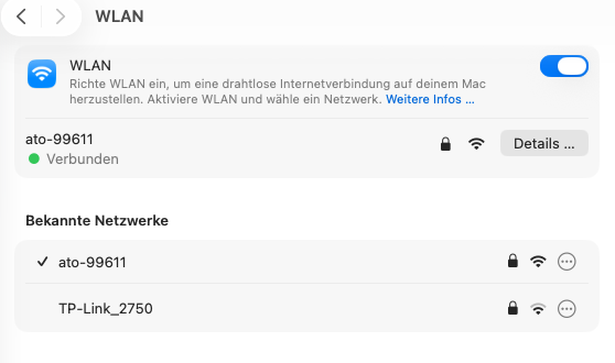 AppleVTD aktiviert bedeutet aktuell, LAN geht nicht (in Tahoe, bis einschl. Sequoia kein Problem).