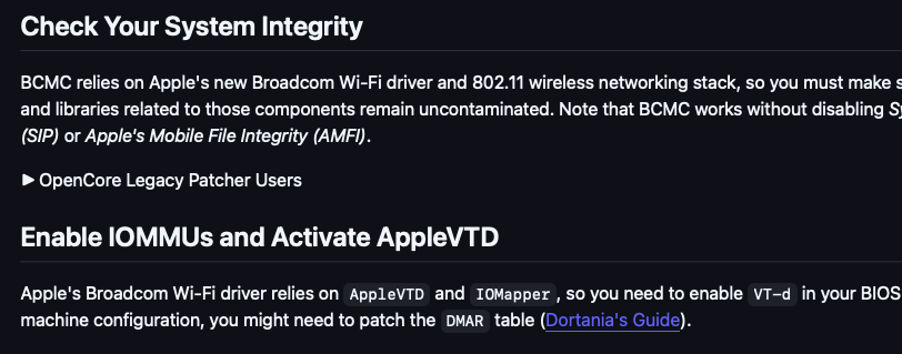 Die Performance ohne VTD ist mit BCMC deutlich niedriger, das ist so angekündigt - aber: siehe Modern Wifi Tahoe Thema, jetzt wäre anstatt BCMC ein weiterer OCLP Fork verfügbar, der Wifi (und AppleHDA) patchen kann.