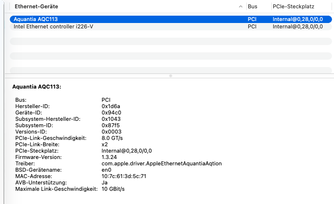 Sehe da keinen Konflikt? Nur bei deiner Intel I226 und Aqantia hast du denselben AAPL,slot-name eingetragen. ist aber nicht wirklich relevant. Kannst du auch "Kühlschrank" eintragen oder so.