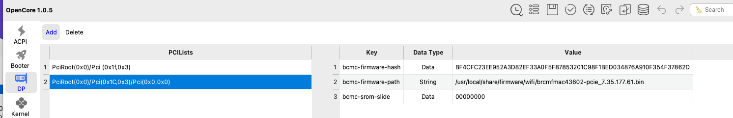 • Mit der BCM94352 hat es noch keiner versucht, oder? Um diese mit OCLP zu Patchen spooft man sie auf die device ID 0x14E4 0x43ba (BCM943602) welche Kexte braucht man um zu spoofen? Weil in der Anleitung steht, dass man die IO Family Kexte und Amfipass rausschmeißen soll. (Und macht dann wenn es installiert ist OCLP nur die Grafik Patches?)