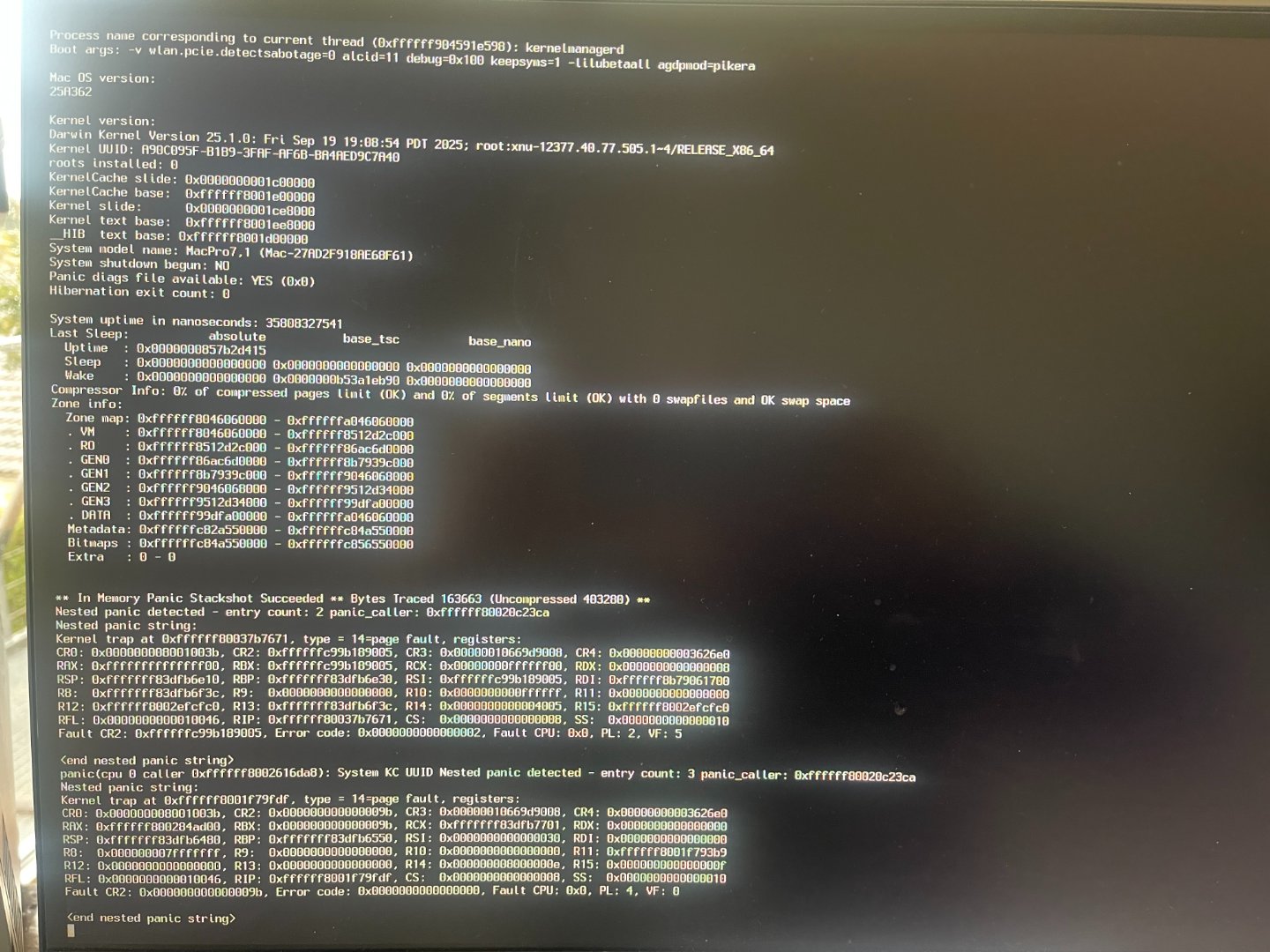 Wenn ich jedoch csr-aktive-config 00000000 eingebe bekomme ich Memory Panic.