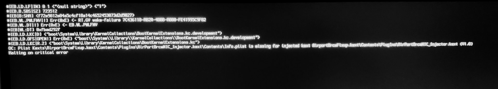 0C: PlistKexts\AirportBrcmFixup.kext\Contents\PlugIns\AirPortBrcmNIC_Injector.kext\Contents\Info.plist is missing for Injected kext AirportBrcmFixup.kext\Contents\PlugIns\AirPortBrcmNIC_Injector.kext (V1.0)