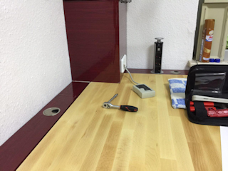 Der Unterbau zum Tisch, da wird das Kabel verstecken einfacher