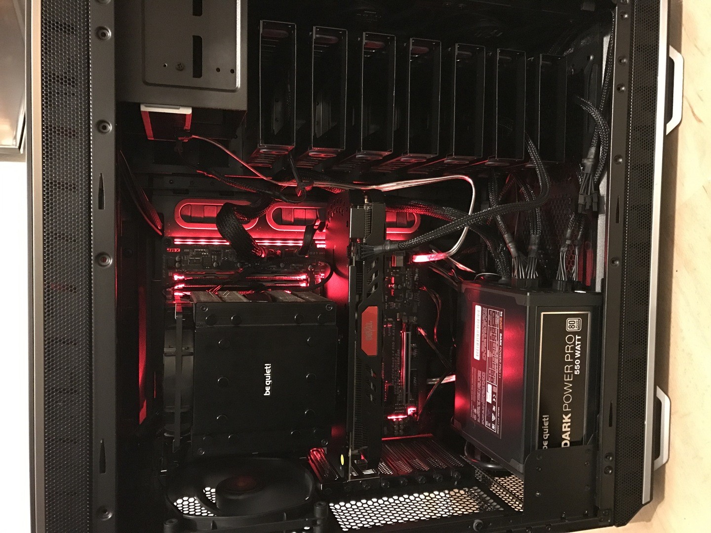 Hier ist mein Setup! Unterm Schreibtisch werkelt der dark base 900 (ohne sichtfenster)