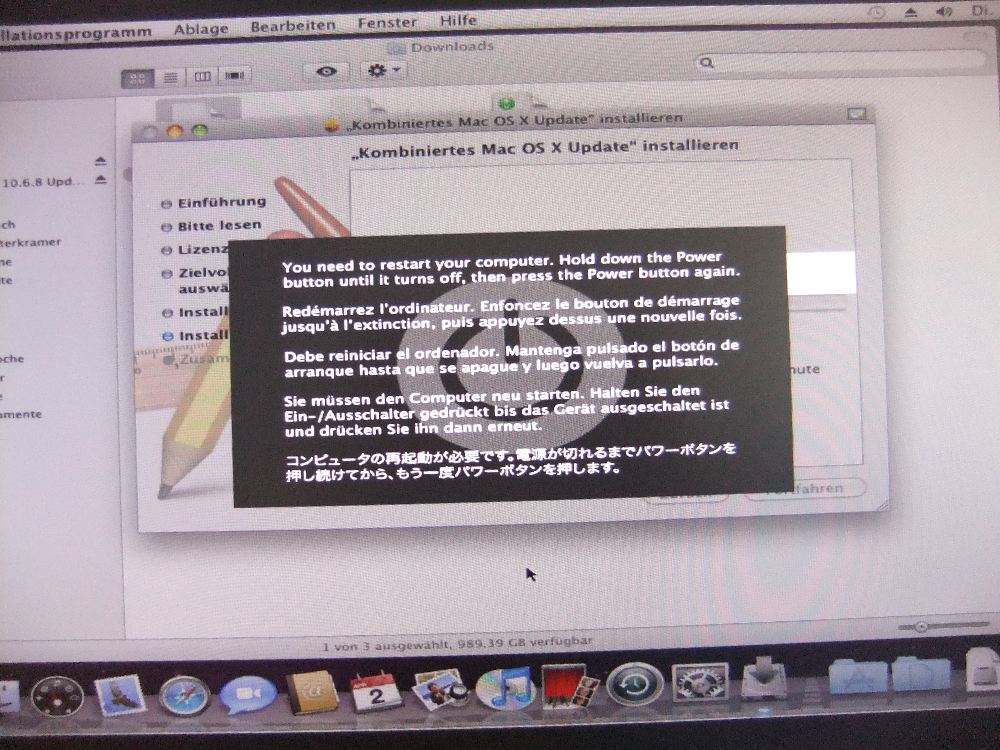 Edit: hatte vor kurzem die neu Installation aufgesetzt und ohne irgendwelche kext zu installoeren haute ich das Comboupdate rauf doch leider kommt kurz bevor der Balken durchläuft eine Fehlermeldung dass eine Installation nicht möglich ist. Das erscheint mir merkwürdig da die Installation zuvor mit den kexts fuunktionirrt hat jedoch kam es ja zur Kernel Panik. Weiß jemand einem Rat ?