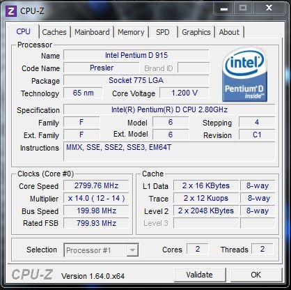 Prozessor: Intel Pentium D , CPU 2,80GHz, 2800MHz, 2 Kerne, 2 logische Prozessoren