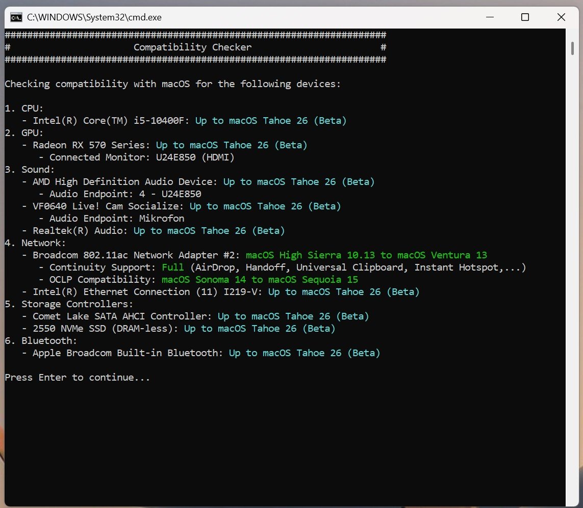 Kann es sein das OC Simplify keine EFI für Tahoe erstellt wenn eine Broadcom Karte installiert ist ?
