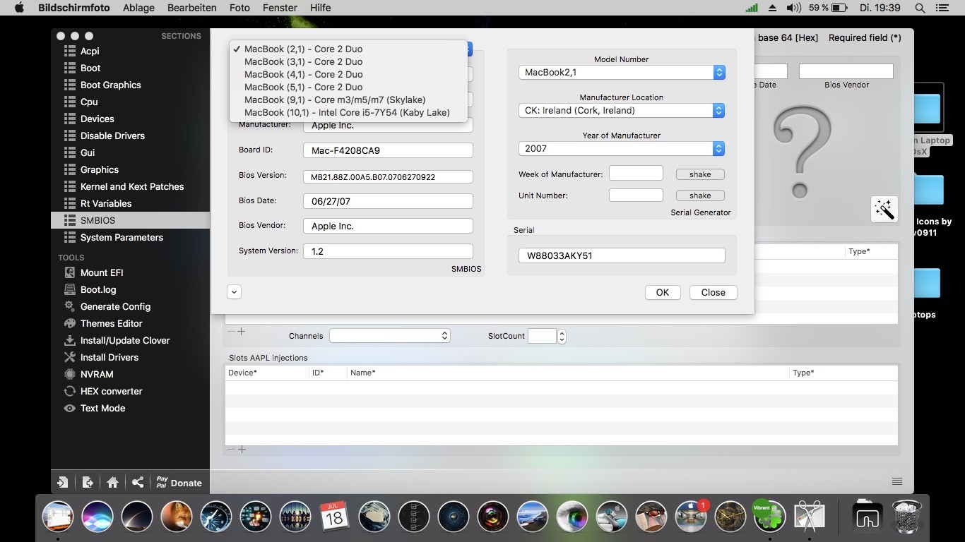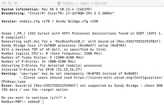 SO wie er nun ist , also mit entsprechender DSDT läuft er ganz gut , das Sleep und Ruhezustand nicht funktionieren muss man hinnehmen , ist schließlich kein Original .Und dank SSD bootet er ja auch schnell und ma kann damit arbeiten