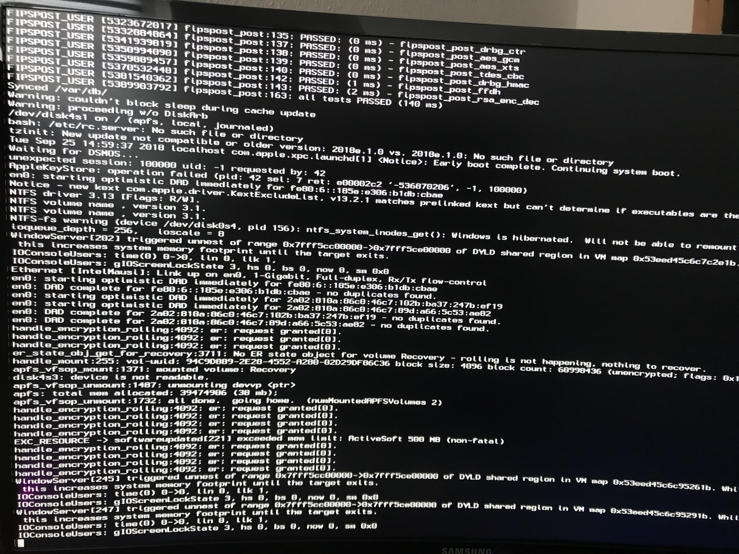 Hängt nun bei "IOConsoleUsers: gIOScreenLockState 3, hs 0, bs 0, now 0, sm 0x0" und ab da tut sich nichts mehr. Alles deaktiviert ausser FakeSMC