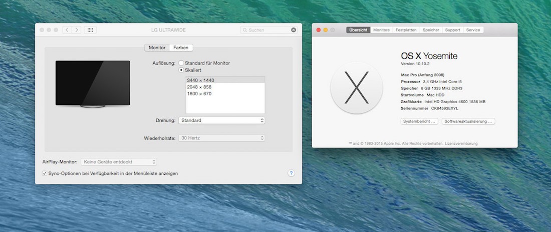 Komisch... somit liegt es am Monitor. Warum erkennt mein Hackintosh / Yosemite den Monitor nicht korrekt? Lässt sich dies irgendwie ändern? Lässt es sich z.B. in der Boot.plist (/Library/Preferences/SystemConfiguration) erzwingen?