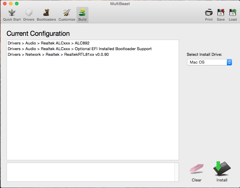 Nachinstalliert wurde von mir LAN, funktioniert nun perfekt, TRIM ebenfalls. Sound per Analog und HDMI wollte ich per Multibeast einpflegen, allerdings erhalte ich dort die Meldung das kein Chamaleon.Boot.plist vorhanden ist - logisch.