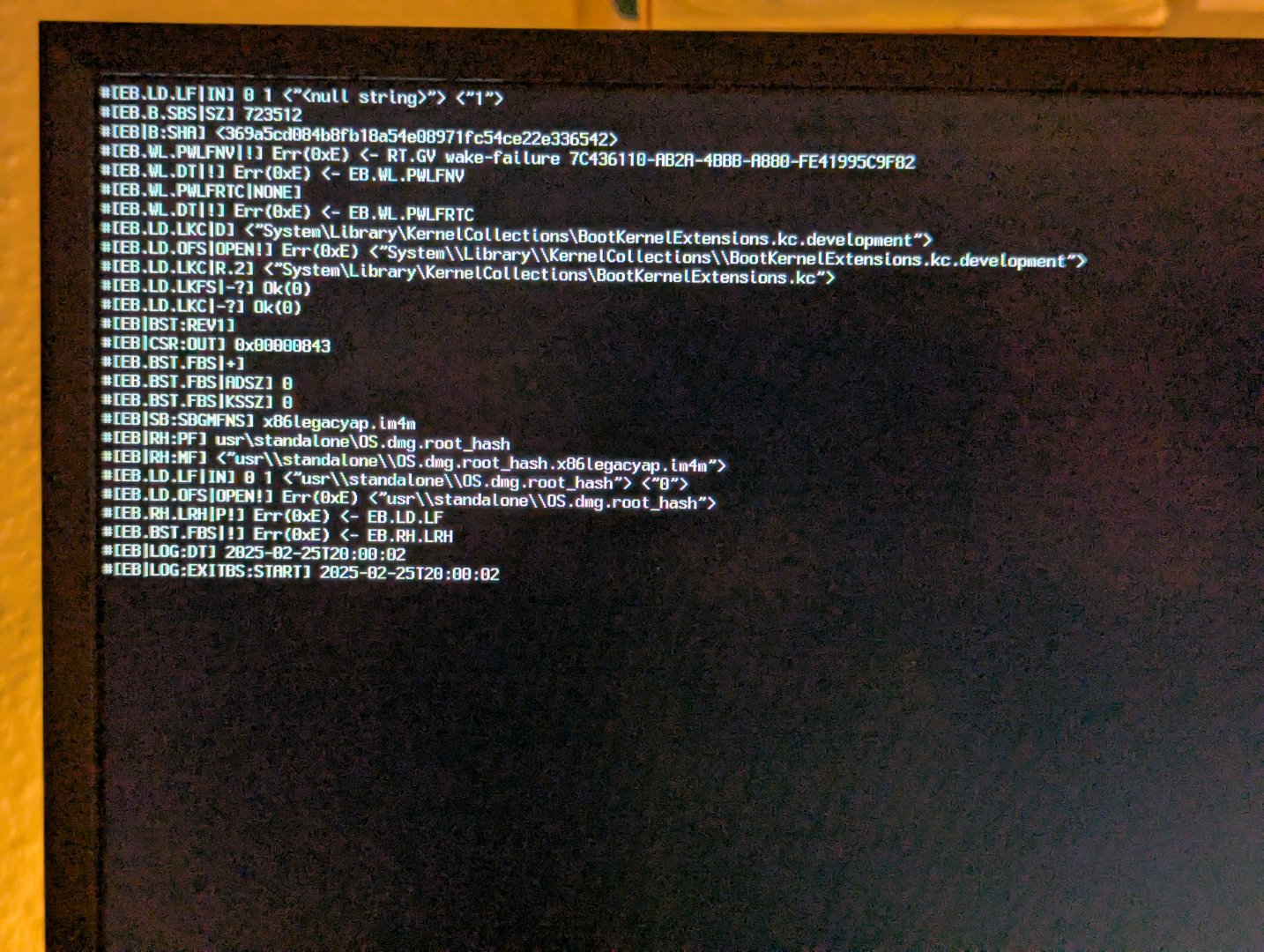 habe alle USB Geräte außer Maus und Tastatur getrennt. Die empfohlenen BIOS Einstellungen überprüft siehe Anhang. Leider scheint nur ein USB Port mit Strom versorgt zu werden zumindest leuchtet die verbaute LED im Stick nur an einem Port. Die Original Broadcom Wlan-Bluethoot von Apple ist aber auch am außen USB Port angeschlossen bekommt wahrscheinlich auch keinen Strom. Thunderbold ist wie in deinem Rechner. Wasserkühlung mit der ASUS Beleuchtung ist ebenfalls verbaut. Das Lan Kabel habe ich auch mal an beiden Ports ausprobiert kann auch nicht sagen welcher der richtige ist. Also booten tut der Rechner nur kurz, zwar leuchtet die LED am Stick dann ständig aber es geht nicht weiter siehe Bild.
